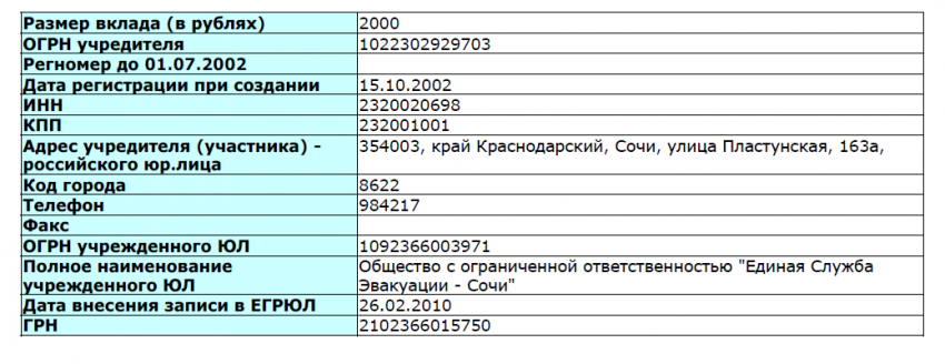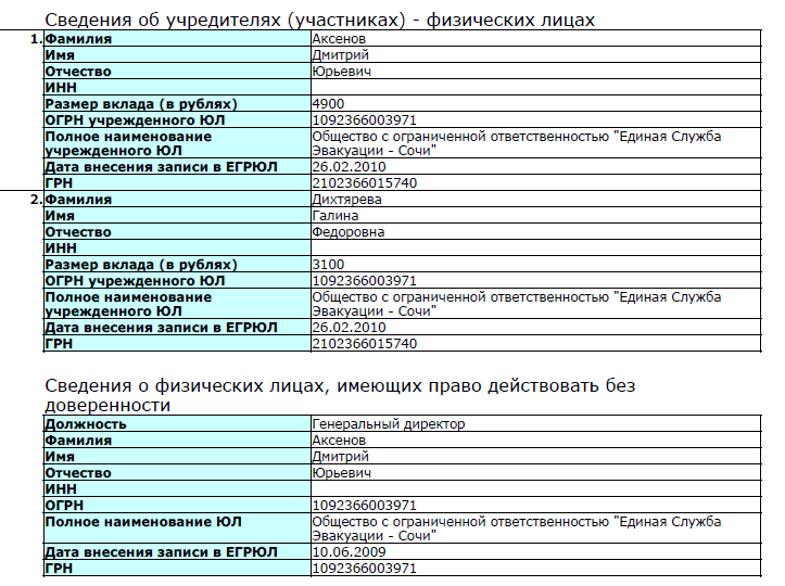Учредители по данным ЕГРЮЛ на февраль 2012