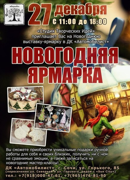 Сообщество молодых мастеров и декораторов «Студия Творческих Идей» дарит городу предновогоднюю ярмарку.