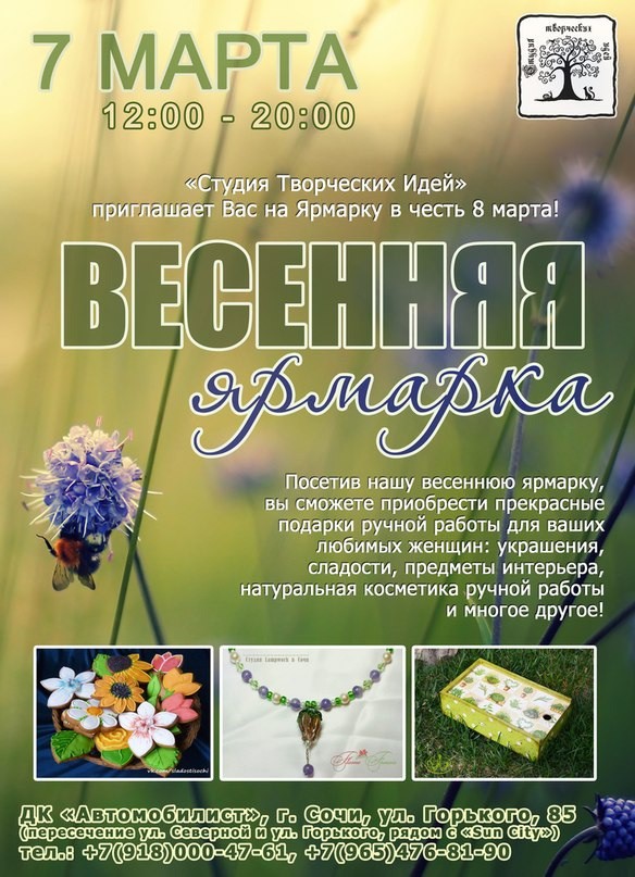 Милым и прекрасным женщинам посвящается! Мастерицы «Студии Творческих идей» проводят выставку-ярмарку 7 марта с 12:00 и до 20:00 в РДК Автомобилистов по адресу ул. Горького 85.