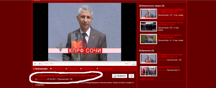 Но однако если посмотреть на факты по просмотров видео то окажется, что видео поздравление от КПРФ люди смотрят охотнее, чем на Главу города Сочи.