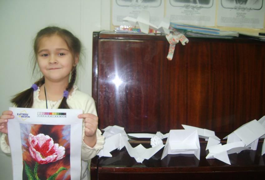 23 марта в клубе «Пристань» прошёл конкурс поделок из бумаги. Дети познакомились с искусством оригами. Победила в конкурсе Попова Мария, ей 7 лет, но несмотря на ранний возраст, она не только ловко изготавливает поделки, но и вышивает бисером различные картины. Этому её научили мама и бабушка.