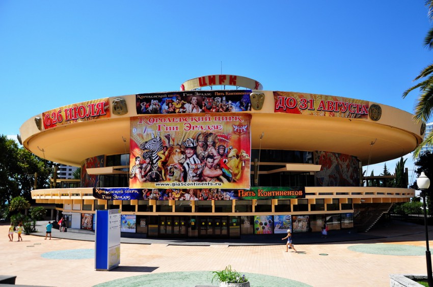 В Сочи начались гастроли известного королевского цирка Гии Эрадзе. Полный зал сочинской цирковой арены, говорит сам за себя. С первых же минут, выступление захватывает зрителей яркими костюмами, королевскими декорациями, оригинальностью творческих решений и великолепной игрой артистов. Пять континентов, сменяют на манеже друг друга. Лед уступает место жаркому пламени востока, а испанская коррида, растворяется в диких джунглях. Три часа представления, мелькают как один миг, наполненный восторгами и аплодисментами взрослых и маленьких зрителей. Не каждый день увидишь тигра летящего под куполом цирка.