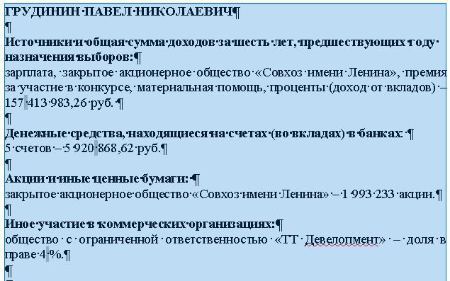 А это основные сведения, которые Грудинин внёс изначально, не думая, что нароют его сокровища в зарубежных банках.