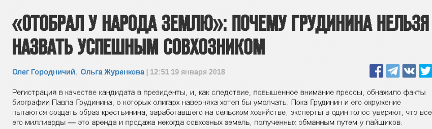 Да Грудинин уже не рад, что вылез. Столько про него гадостей и преступлений вылезло, что странно будет, если это всё ему с рук сойдёт.