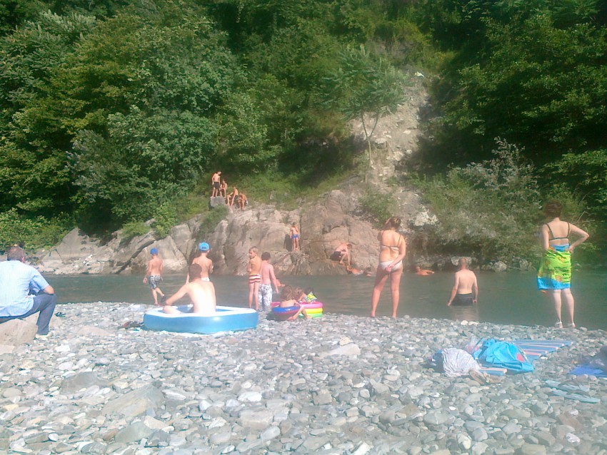Иначе на берегу сидеть придётся, за-то бесплатно. Там ещё ветерок постоянно по ущелию реки, полюбому прохлада.