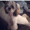 Лучший друг ребенка и семьи! Порода ши тцу, кличка Бэля. Белая, на мордочке и ушах коричневые пятна.