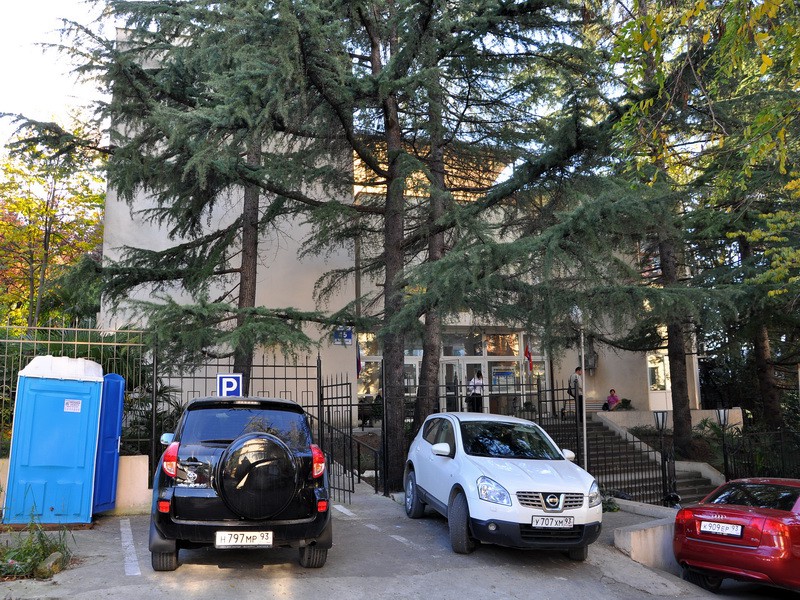 Продолжая разговор о сочинских улицах и олимпийском архитектурном облике, предлагаю вашему вниманию переулок Горького. Стоит сделать несколько шагов от федеральной трассы и зона олимпийского гостеприимства меняется прямо на глазах. Бывшее здание газеты «Черноморская Здравница», ныне « Росимущество». Чиновники этой конторы стоят так высоко, что не хотят делить с простыми смертными даже свой туалет, установив покосившуюся кабинку на стоянке для транспорта. Запах вполне олимпийский, гостеприимно разносится на весь переулок.