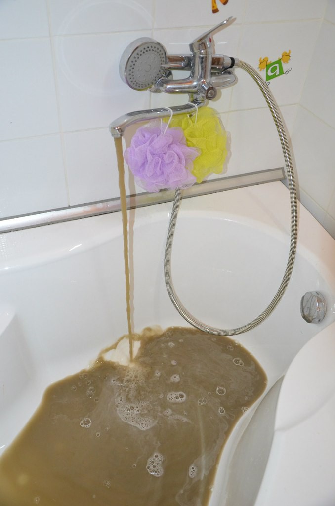 Ничего себе примеси!!! Ощущение, что подрядная организация даже не пыталась промывать участок водовода, а наоборот утрамбовала туда глину.