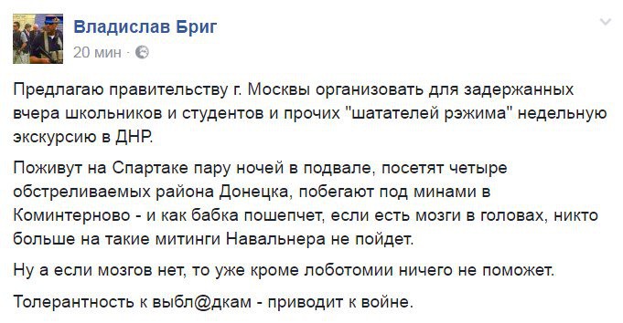 Вы мне свои влажные мечты уничтожать всех неугодных не приписывайте.