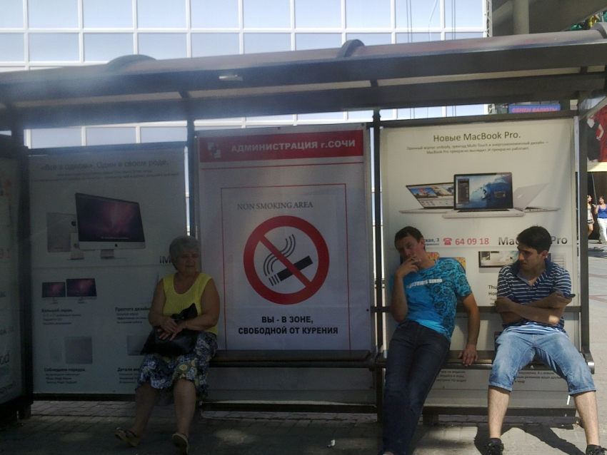 Вот ведь избита уже тема с курением в Сочи, но не дает она мне покоя! Лично я положительно отношусь к культурному курению, где можно там кури, не заставляй дышать окружающих. Но ведь что ни делают наши городские власти, никуда с улиц курильщики не деваются. Часто иду по городу и вижу как люди с сигаретой фотографируются на фоне плакатов «Сочи — город свободный от курения». Честно сказать специальных мест для курения в городе тоже не так много, видел только на набережных, но если нет места, зайди ты куда-нибудь за угол и покури спокойно!