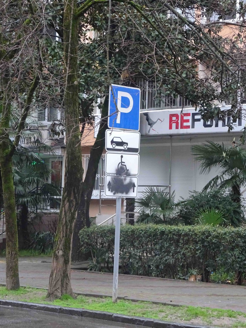 Табличка замазана а на ней не знак «Инвалид» а протяженность действия. Незнающий поставит сразу после того как не увидит стертую разметку на дороге а эвакуатор приедет и заберет =) И потом уже доказывай в суде что табличка была закрашена.