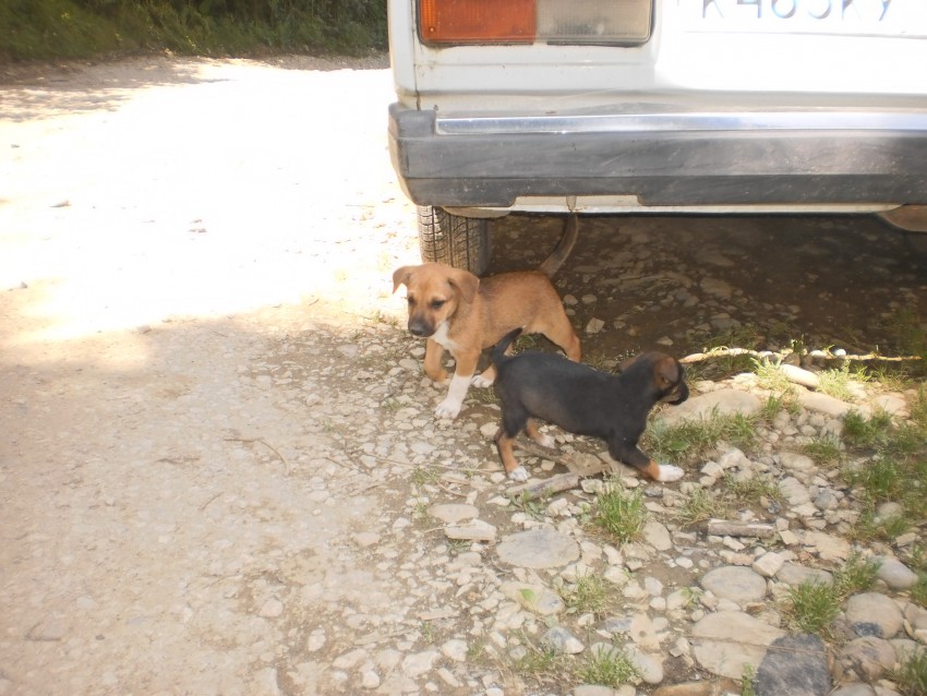 маленькие, но смышлёные щенки. Вероломно подброшенные. Рыжий — пацан, чёрная и изящная — девочка. Доставка — бесплатно. Заберите кто-нибудь, а? 8-988-50-44-621