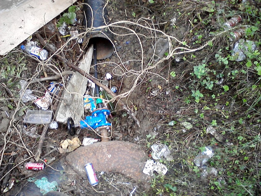А вот так подключаются к водоводу стройки — скорее всего, подключение незаконное. Иначе бы, наверное, прибор учёта стоял в месте подключения.