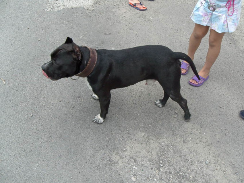 СРОЧНО!!! На центральном пляже г.ТУАПСЕ 21 июня была найдена собака, по словам ветеринара ему год, максимум полтора, были сделаны прививки.Собака абсолютно не агрессивна к людям, кошкам, собакам, к большим собакам выборочно.Нами был приобретен новый ошейник, поводок, сделаны прививки, на поводке пес ходит совершенно спокойно не дергает, Оставить себе не можем так как мы в гостях, а уезжать домой в Москву будем через месяц.Сейчас пес живет в одной квартире с 5-ю детьми и 4-мя взрослыми, кошкой и кроликом совершено спокойно.Собака была либо выброшена в связи с бесполезностью участия в боях, так как не агрессивна по характеру по словам кинолога, у которого консультировались можно ли оставить собаку временно, либо убежала на собачью свадьбу.Для боев брать бесполезно, не тратьте время.Собака ищет хорошего хозяина.89186082680