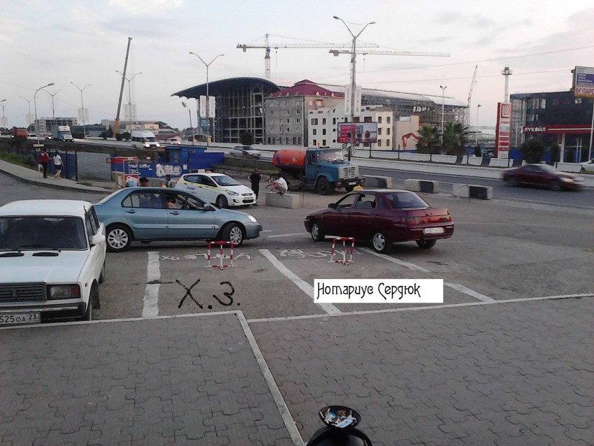 На Сочинской земле и так стоит остро вопрос с парковочными местами, так давайте ВСЕ теперь 2 кола ставить… дом — работа!!!