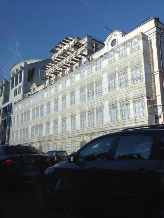 Я думаю надо закрыть баннерами все строительные объекты города, абсолютно все, а именно обязать закрывать строительные леса не зелёной сеткой на которую страшно смотреть, а баннерами с рисунком, фотографией данного объекта. Тогда даже за этими баннерами в любое время можно будет продолжать заниматься отделкой и ремонтом.