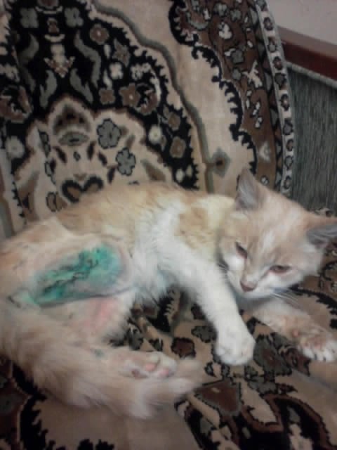 Очень ласковый котик, 9 мес., сильно пострадал от живодёров и остался без задней лапы. Не- навязчевый и добрый котейка ищет своих заботливых хозяев! Чистоплотен, кастрирован.