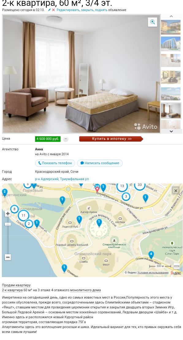 Вот это да! Спасибо за такой развёрнутый ответ! Конечно, друг будет заниматься этим сам. Я только соберу информацию, которая на виду. Близость к морю, соотношение цены/кадратов и пр. Так, например, друг спрашивает о квартире на Санаторной, 26. Мол, там до моря километр. По факту там вообще подхода к морю не наблюдается. Придётся ехать на Мамайку или на Ривьеру.
