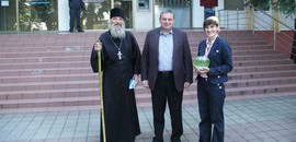 Судя по фото — это возле администрации Центрального района… Может мимо проходили, увидели, попросили автограф на аквариум, фото на память… )))