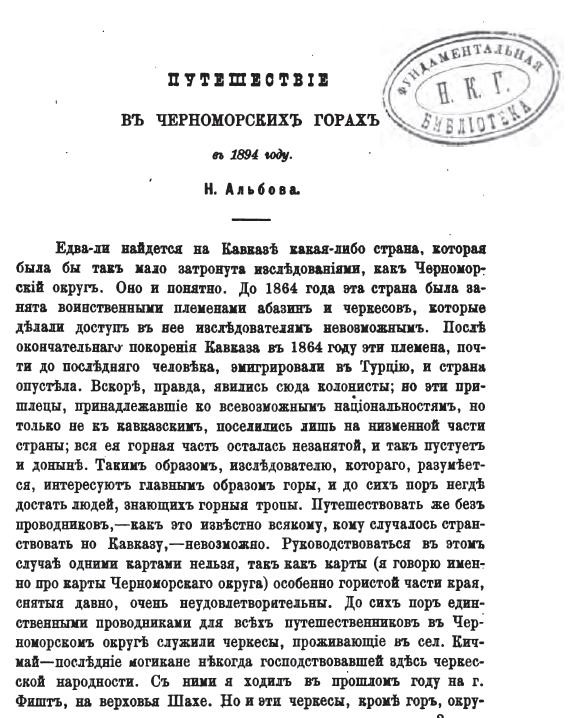 Случайно обнаружил на просторах сети очень интересную подборку старых (дореволюционных) книг о Кавказе, в том числе и о районе нынешнего Сочи.