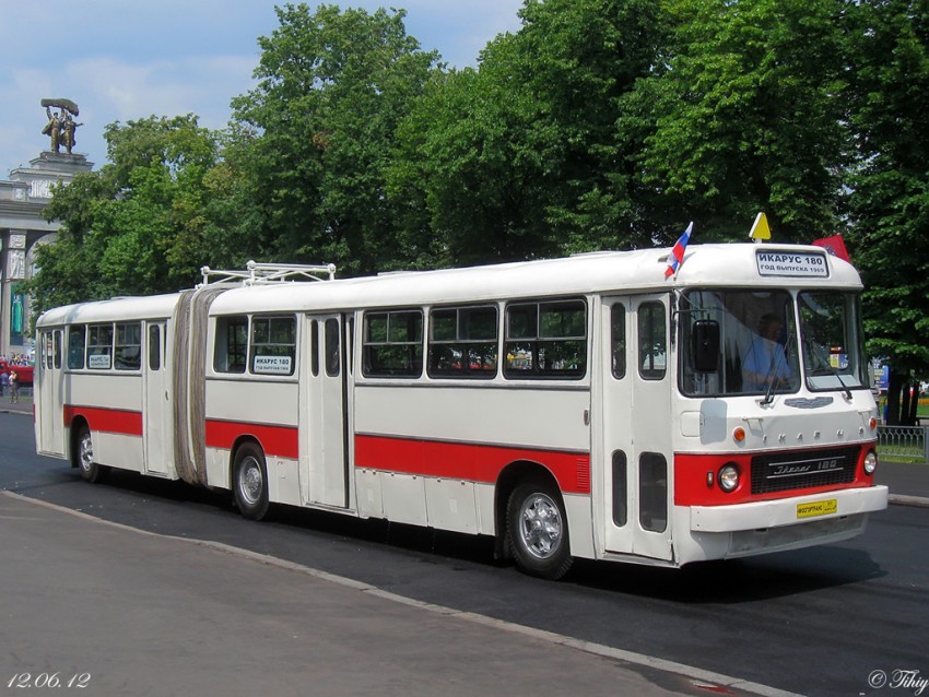 17 сентября 1964 года на улицы курорта вышли в рейс первые опытные образцы автобусов «ЛиАЗ-677» и «Икарус». Последние состояли из двух частей, соединённых гибким переходом, и ходили по маршруту «Вокзал-Мясокомбинат». Икарус из двух частей- это «Икарус-180», других вариантов быть не может.