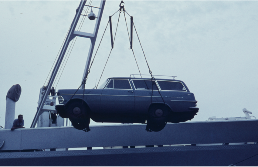 Погрузка автомобиля туриста на корабль в порту Сочи