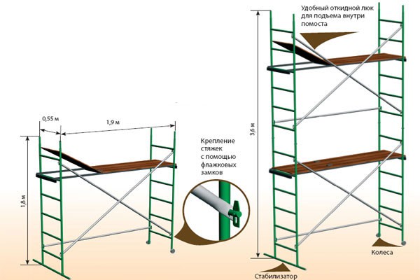 На высоте 6-8 метров работы 4 рамы по высоте выходит. Если нет жесткости, то можно 8 штук в кучу.