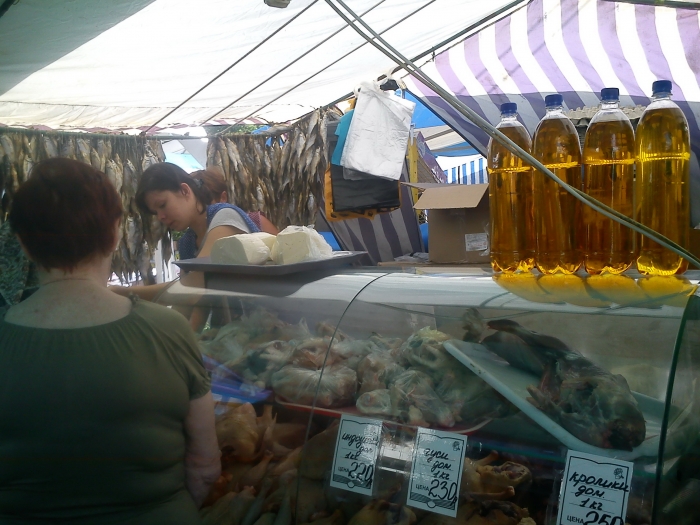Мясо на привозе… всякое. Муж один раз в задумчивости купил насмерть перемороженных кур, больше у этой продавщицы не покупаем. Иногда, впрочем, ничего попадается, особенно, если в пятницу приехать.