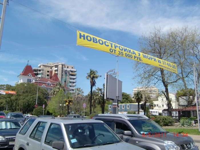 Перетяжек через 5-10 метров натянули над дорогами, фасады домов отремонтированных задрапировали.