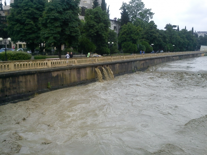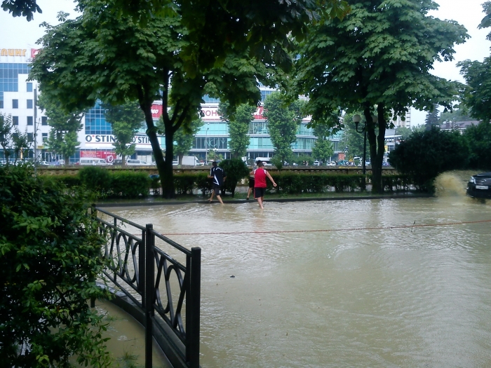 21.06.2011 г. в 7.00 ехал на маршрутке по Гагарина с Донской. С ранннего утра по ул. Чайковского течёт река по колено и выше до самого кубанского кольца. А всё по тому, что строители дублёра Курортного проспекта запрудили Хлудовский ручей, по которому дренажные и ливневые стоки с гор Пасечная и Виноградная текли в реку Сочи. Всё сие происходит по тому, что решение о стройках в Сочи принимает Москва и пришлые «кубаноиды» которые не знают местных особенностей. Как говаривал профессор Преображенский «Разруха не в туалетах, а в головах». К сожалению снять на камеру не смог, спешил на работу. Но народ внимал и я думаю фото и видео ещё появится.