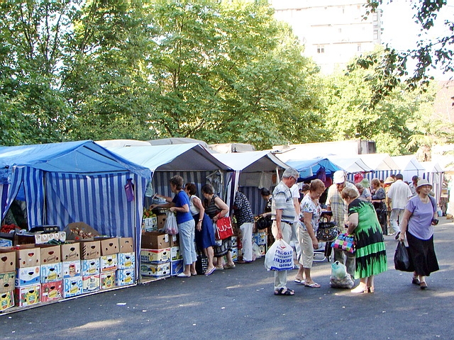 в одной из палаток привоза, женщина продавец сказала, что их, кубанцов, заставили покупать палатки синие «Привоз».