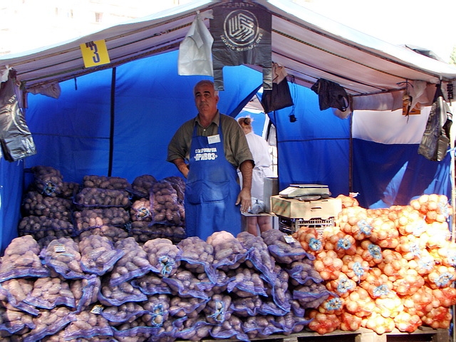 Картошка тоже разница ценами, дороже 18 рублей продавать нельзя. Сегодня был один умник, продавал по 20 рублей, так ему быстро запретили торговлю.