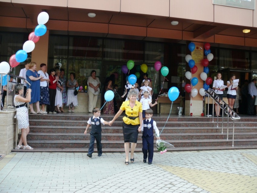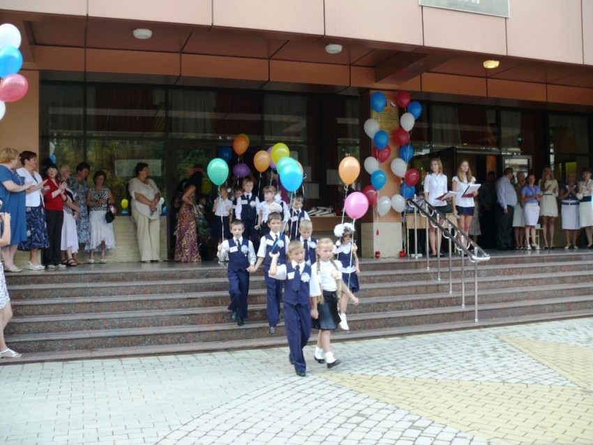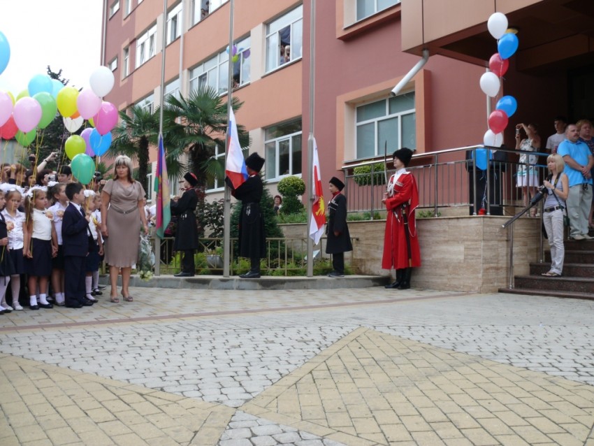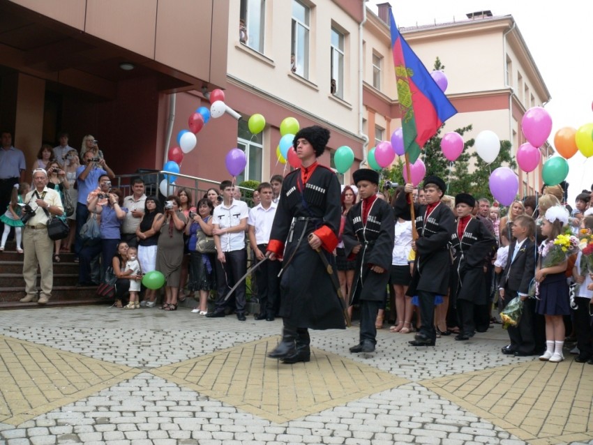 За две недели до первого сентября мы начали отрабатывать выход почётного караула школы. Мало того, что это первый выход, да и к тому же это первый звонок для первого казачьего класса. Ну должны же мы младших встретить, как положено. Каждый день, в выходные и праздники. На Успение, после крестного хода, маршировали, прям перед храмом. Кто-то упрямо разворачивался через правое плечо, кто-то принципиально шёл с правой, у кого-то невозможно было убрать вечную улыбку с лица. Несколько раз мне казалось, что ничего не выйдет. Привлекались взрослые казаки, как из почётного караула, так и недавние дембеля, последние больше всех впадали в отчаянье, но это ведь тяжкий грех ;) и стиснув зубы, мы шли вперёд. Ребята старались со всех сил, от всей души. Кого-то несколько раз хотел убрать, но видя старания, решил, шо нехай пройдут, как смогут, ну не зря, же они стараются, вместо моря и компа, по нескольку часов на жаре. К тому же муштра и шагистика никогда небыли сильными сторонами у казаков ;) да ещё по многим обстоятельствам завис пошив формы, заказали поздно. Но спасибо людям, вошли в положение и пошили за три дня. По дореволюционному крою, мундиры вышли на зависть взрослым :) В последние дни стали шагать хорошо, но на репетициях, когда вокруг стояли люди, начали сбиваться. Опять же несколько расслабило дисциплину выписка из роддома нашего казака который первым пришёл в общество естественным путём. Но зато уныние пропало совсем, осталась только лихость. Вот с ней и пошли, да ещё и как пошли! Не одной запинки, шо те кремлёвцы ;))) После торжественной части только и оставалось, что поблагодарить их за службу! На что они ответили дружным «РАДы СТРАТЬСЯ!!!» Дождавшись окончания линейки мы пошли в кабинет к нашим малышам. Очень светлый класс, радостные родители, весёлые чада. Но веселее и радостнее всех была Елена Анатольевна :) Казалось она готова кинуться в пляс :)