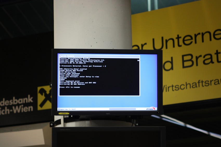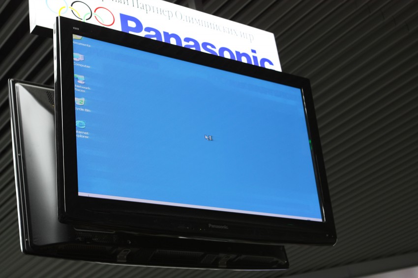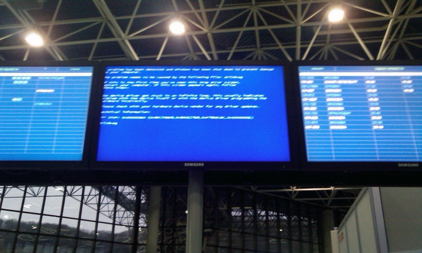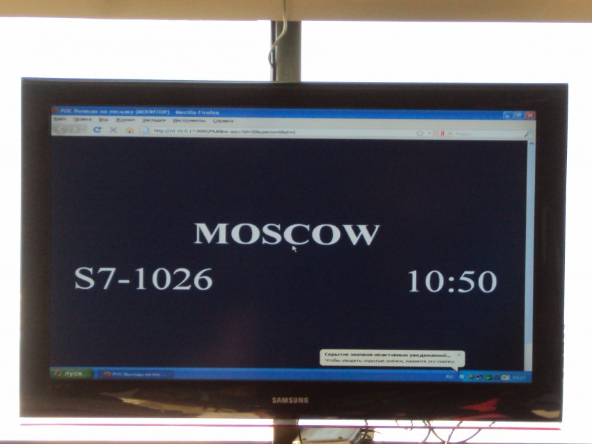 Та в аэропорту энто частенько.Как сказал один знакомый, который там работает, аэропорт не забашлял «КРОК`у» или астеросу, делавшие монтаж и внедрявшие ПО-в общем не все доделали.В прошлом году когда там работал, на стойках рейсы на табло слайдами в поверпоинте мышкой переключали)))В этом году вроде автоматически.