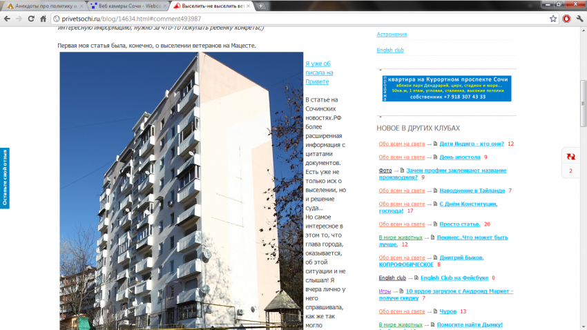 Выселить-не выселить ветерана - вот в чем вопрос. Или как достучаться до главы Сочи?