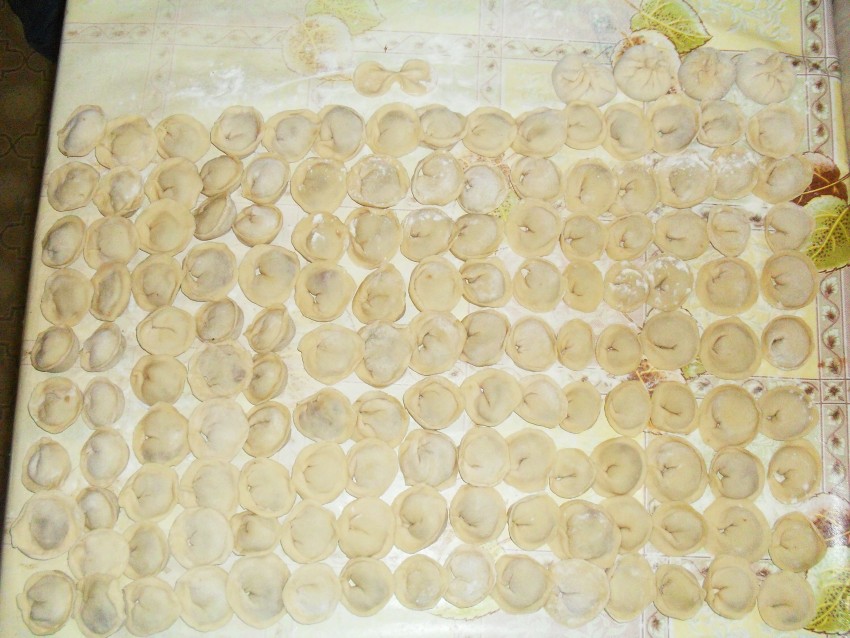 Фарш: свинина-говядина+лук (половина веса мяса). Лук люблю белый, он сочный. Прокручиваю на мясорубке с самой крупной решеткой. + черный перец, соль.
