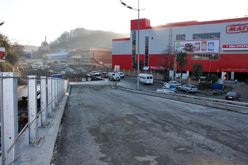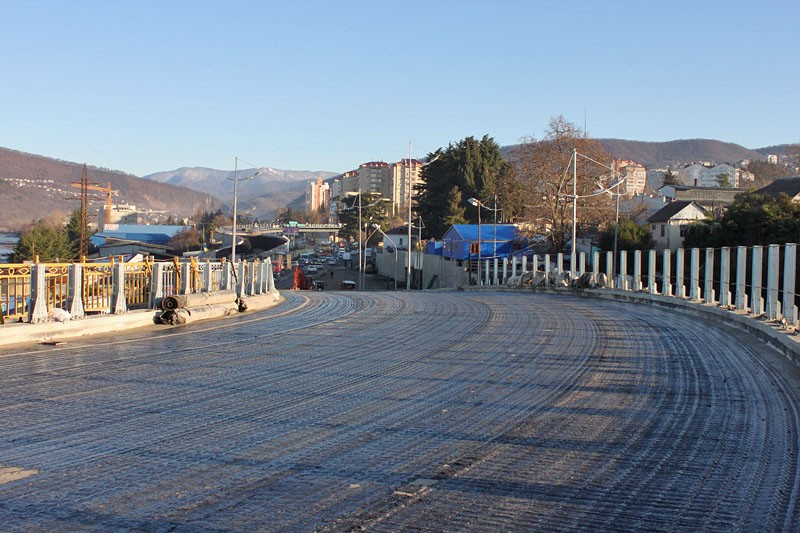 И вот, за несколько дней до наступления Нового 2012 года, специалисты сочинского генподрядного предприятия «Мостдорстрой» приступили к заключительному этапу работ – асфальтированию проезжей части мостового перехода.