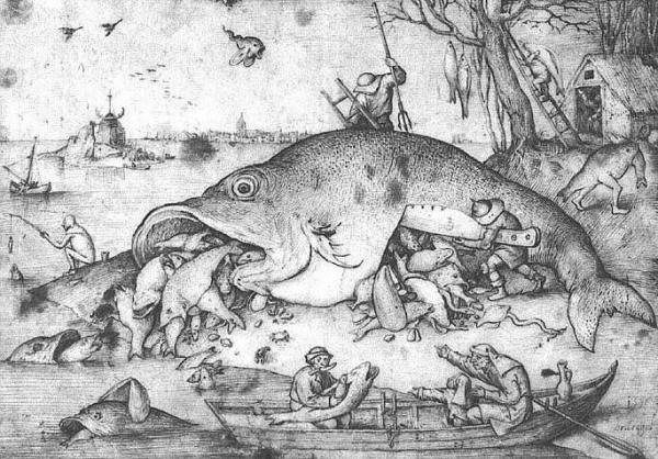 П. Бейгель (ст.) «Большая рыба поедает мелкую» (1556, Вена, Альбертина)