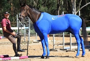 Но лошадям до сих пор разве что ноги бинтовали. Утянуть в костюм всё тело лошади никому не удавалось. Ведь костюм должен быть тугосидящим — как его на лошадь натянуть? И степень сжатия мышц лошади должна быть разной.