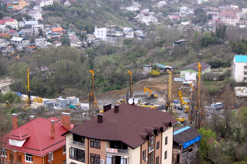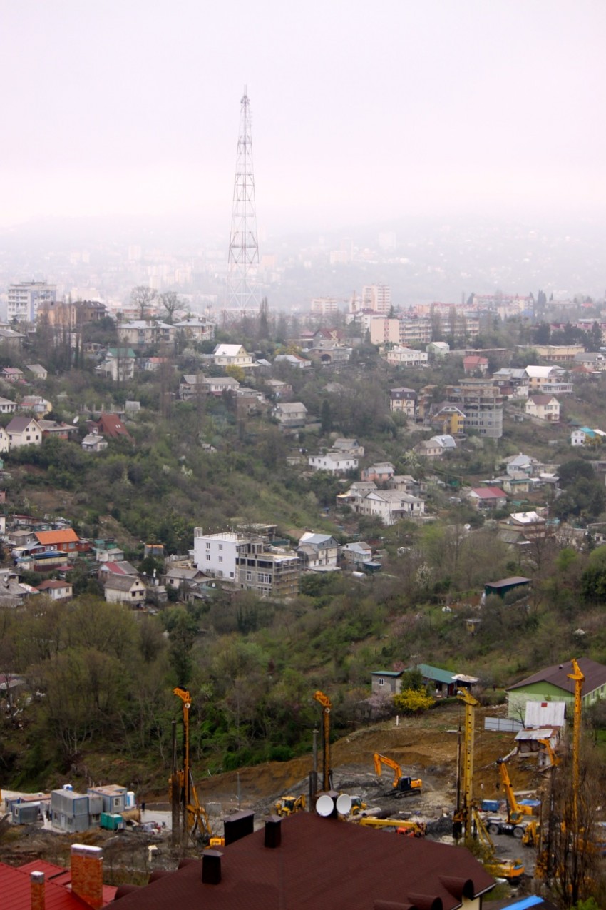 Удивительно приятный поворот событий возник когда я увидел объявление, что оказывается можно было на тот момент купить квартиру в одном из таких отличных домов за 50 000 — 70 000 у.е. По московским меркам даже комнату в нормальном месте за столько не купить, а здесь неплохой выбор полноценных квартир (хотя и небольших по метражу) да к тому же и в новых красивых нетиповых индивидульно спроектированных домах за такие стоимости. Я сначала подумал, что это какое-то надувалово, оказалось действительно в нескольких крупных агентствах подобные предложения имели место. Недолго думая, назначил несколько встреч с риэлторами, объездил много разных мест, решил, что если буду брать, то только так чтобы вид был и дорога более менее приличная до дома. Большинство предложений не соответствовало этим параметрам, но мне повезло и нашелся отличный, очень приятный вариант на верху Лысой горы с шикарным панорамным видом и на море и на горы и на лесок c невсепоглощающим количеством построек прямо под окном. Я с радостью приобрёл этот вариант.
