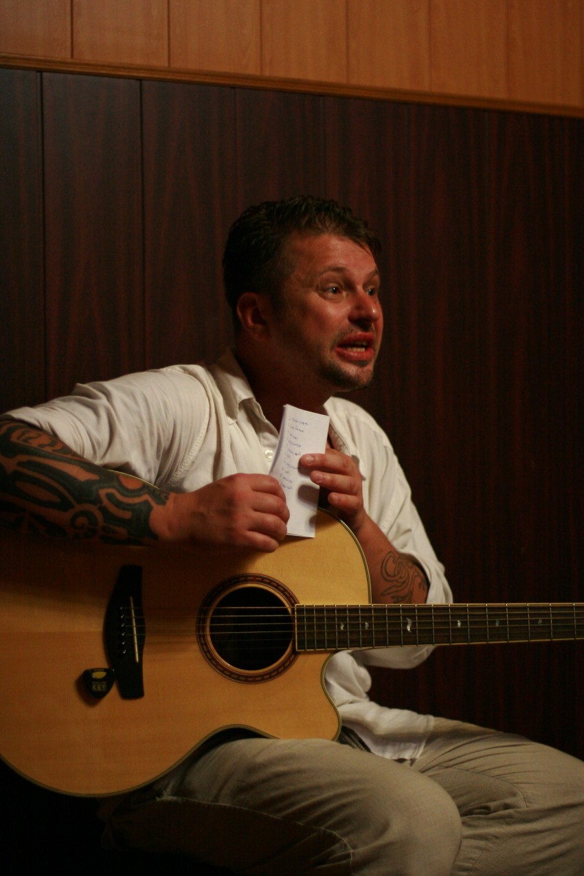 Все присутствующие встретили Илью дружными аплодисментами. Маэстро взял вступительное слово, сразу попросил выключить телефоны, чтобы никому не мешать, и не шептаться во время песен. Буквально сразу же рассказал анекдот, чем поднял и без того веселое настроение всем.