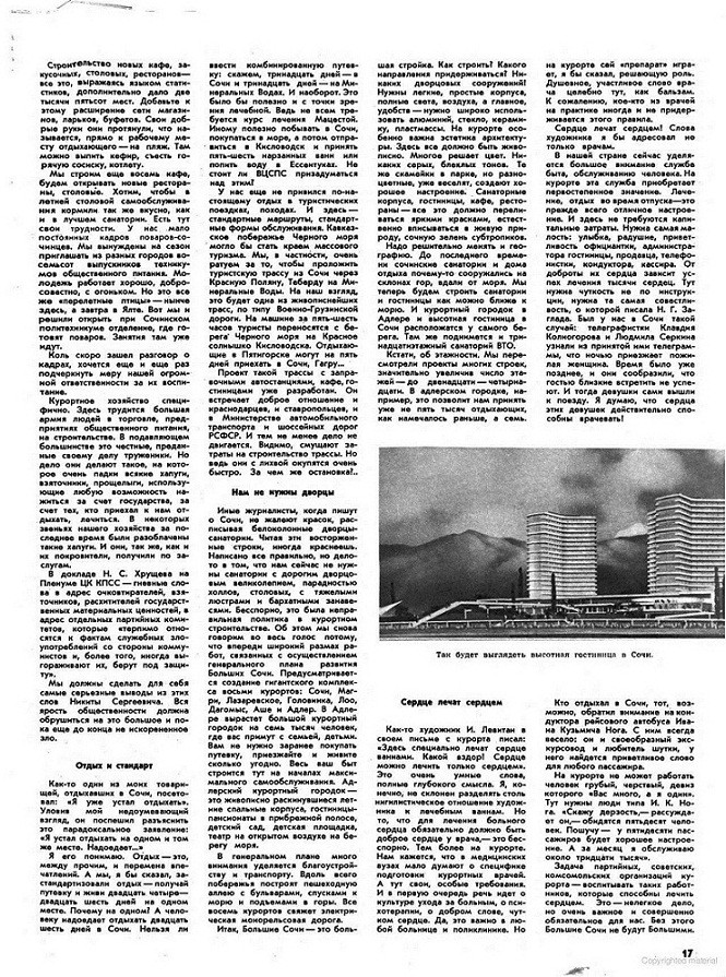 В начале 60-тых годов все поселки, расположенные вдоль берега моря, объединили в город Большой Сочи.