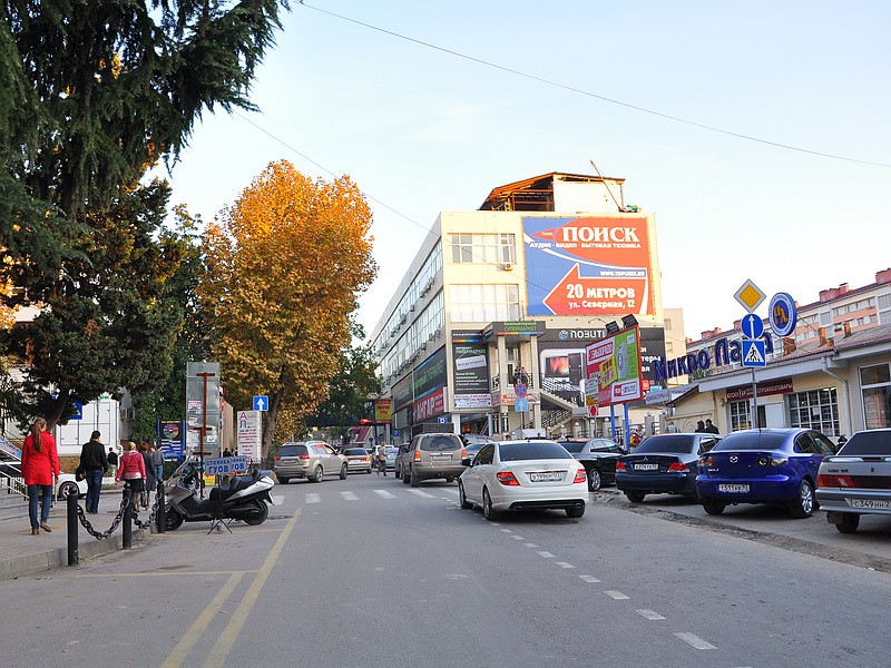 Если перефразировать героя детского мультфильма как две капли воды похожего на чиновников сочинской администрации, то нам определенно не помешает зайти на улицу Северную и полюбоваться архитектурным обликом олимпийской столицы. Здесь можно встретить различные стили точечной застройки и модернизацию бывших советских фабрик в магазины. Так сказать пост модерн эпохи кубанского правления в Сочи. Комитет архитектуры вместо комплексной реконструкции улицы Северной, отдал ее на откуп мелким застройщикам. Каждый, кто урвал здесь кусочек земли на месте ветхих домов, строит свои архитектурные шедевры.