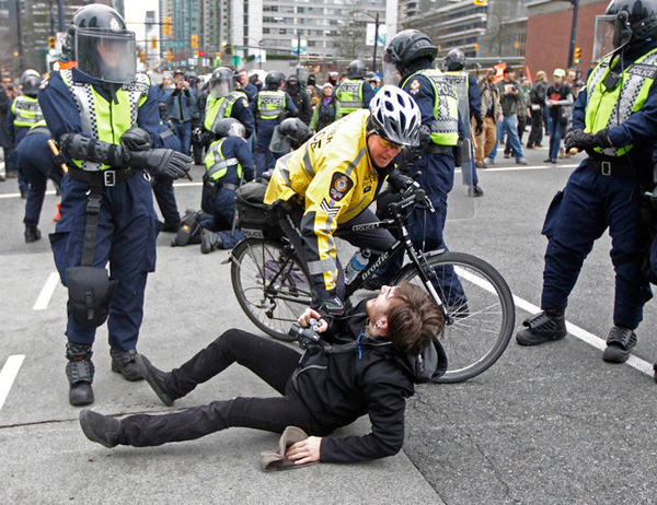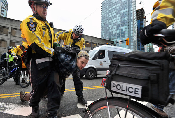 Цитата: "… Канадская полиция произвела несколько арестов участников антиолимпийской демонстрации в центре Ванкувера, в которой приняли участие активисты кампании в защиту бездомных, а также те, кто протестует против использования традиционных индейских земель для строительства спортивных объектов. Одна группа сотрудников полиции перегородила центральные улицы города, а вторая пытается оттеснить демонстрантов, многие из которых скрывают лица под черными масками. По данным полиции, в акции протеста принимают участие около 200 демонстрантов..."