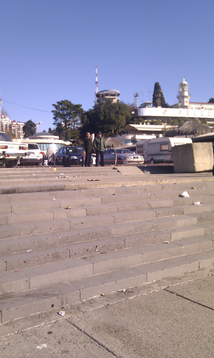 Мы решили сегодня прокатиться по городу — приехали к морпорту: вся площадь заполнена машинами, очень много гуляющих, солнышко греет. Красота! Пошли к морю и оказались среди мусора, который явно остался после новогодней ночи. Т.е. вчера прошел день, сегодня полдня, а мусор на месте. Может и выкидывали -бы бутылки и обертки в мусорники, но их просто нет.
