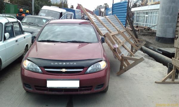 На улице Мира от легкого ветерка падают временные заборы прямо на стоящие в пробке автомобили. Будем надеяться на то, что мост они строят крепкий в отличие от забора.