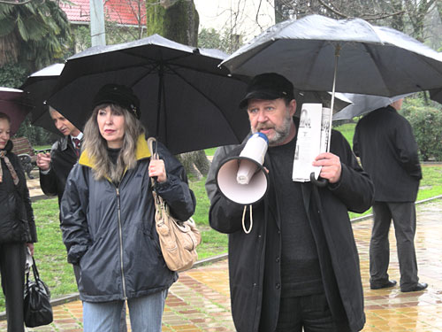 На митинге прозвучали требования об отставке города Сочи Анатолия Пахомова и губернатора Краснодарского края Александра Ткачева. А также, похоже, на митинге присутствовали провокаторы. Так, например, появились некие женщины, которые говорили собравшимся, что митинга не будет из-за дождя, а вместе этого Глава города приглашает всех в теплый Зимний театр на бесплатный концерт, посвященный дню Защитника Отечества. Информация не подтвердилась и митинг все же состоялся…