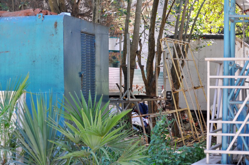 Не лучше картина и внутри парка возле спортивного городка. Строительный мусор, ржавые конструкции, заборы новых строений общепита, игровые автоматы на газонах, накрытые старым и грязным брезентом. Лепота! Лучшего места для отдыха трудно придумать.