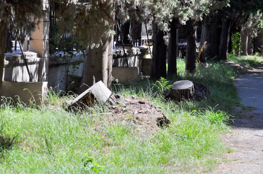 В ходе прогулки насчитал порядка 50 пеньков. Часть из них – явно от здоровых деревьев. Вовсе не удивительно, что в парке массово гибнут прежние красавцы-деревья, многие из них хранят на себе следы прошлых аттракционов, а другие исполняют роль фонарных столбов.