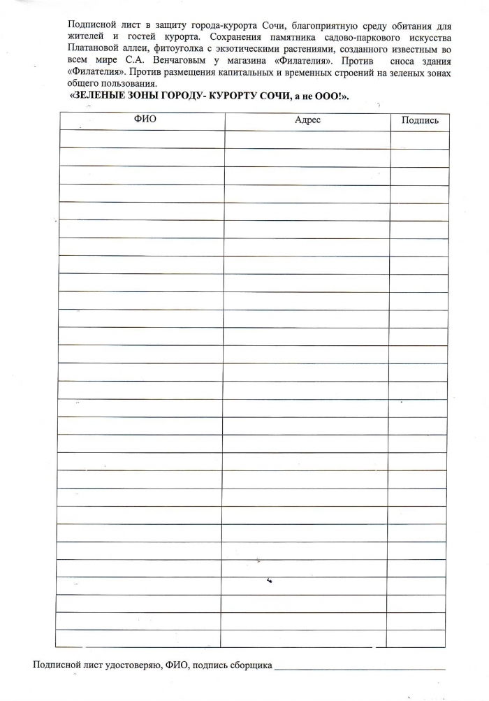 СБОР ПОДПИСЕЙ В ЗАЩИТУ ФИЛАТЕЛИИ, ПАМЯТНИКА АРХИТЕКТУРЫ «ПЛАТАНОВАЯ АЛЛЕЯ» ПРОДОЛЖАЕТСЯ. СЕГОДНЯ ЧЛЕНЫ ИНИЦИАТИВНОЙ ГРУППЫ ПО ЗАЩИТЕ ГОРОДА КУРОРТА СОЧИ У ГЛАВПОЧТАМТА ПРОВОДИЛИ СБОР ПОДПИСЕЙ.
